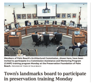 A training program designed to help support the work of Palm Beach’s landmarks board will be held Monday at Town Hall. Hosted and sponsored by the Preservation Foundation of Palm Beach, the Commission Assistance and Mentoring Program (CAMP) will assist commission members in their efforts to build strong local preservation programs. Members of the town’s […]
