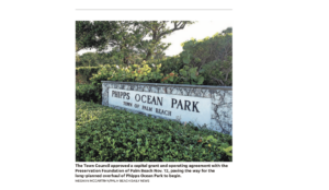 Jodie Wagner, Palm Beach Daily News The Palm Beach Town Council approved a capital grant and operating agreement with the Preservation Foundation of Palm Beach on Nov. 12, paving the way for the long-planned overhaul of Phipps Ocean Park to move forward. Council members unanimously approved the agreement, which will govern improvements to the park […]